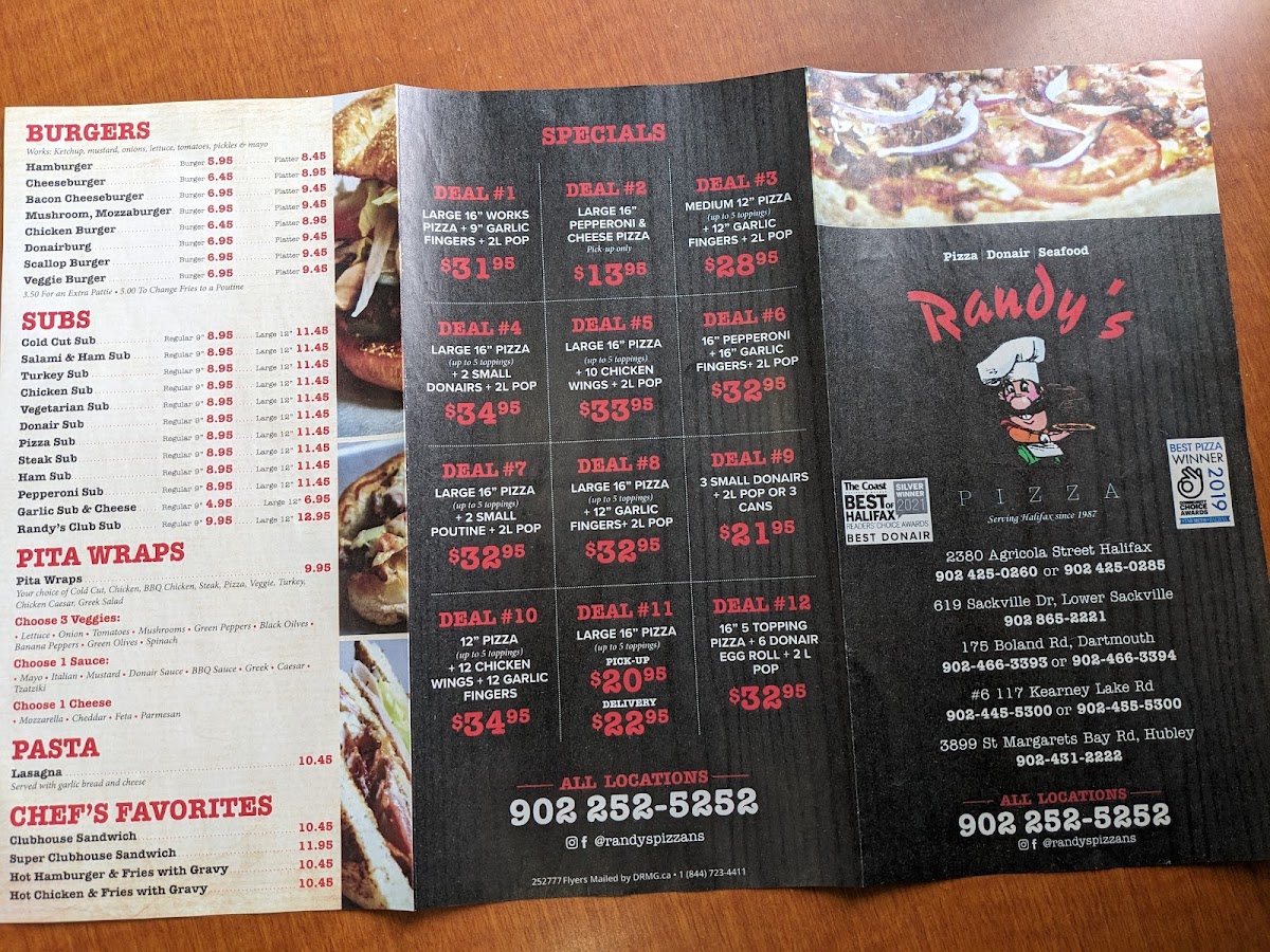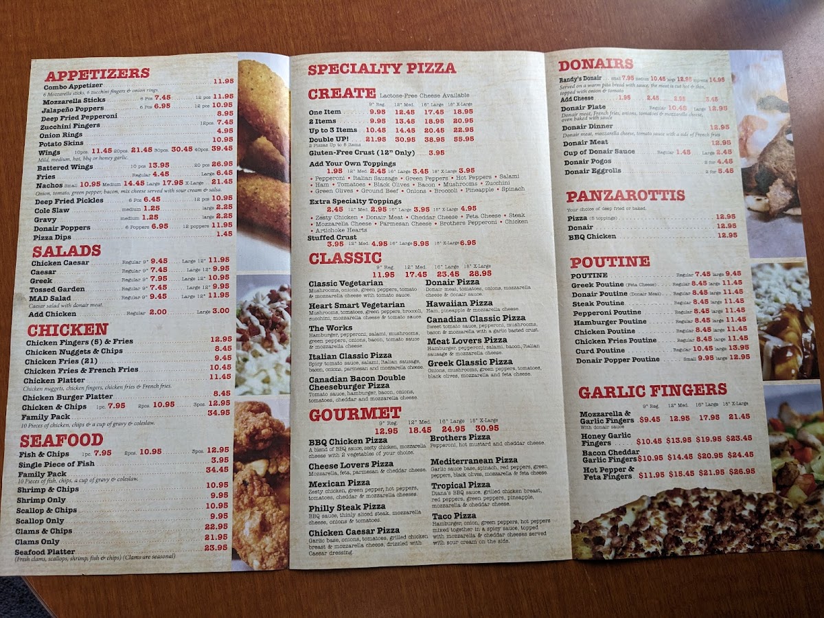 Sixteen-inch large pizza with up to five toppings, two regular donairs, and two-liter pop.